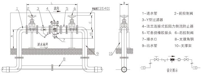 (5) 倒流防止器前(后) 建議設置伸縮節(jié)或可曲撓橡膠接頭,以便拆卸倒流防止器。