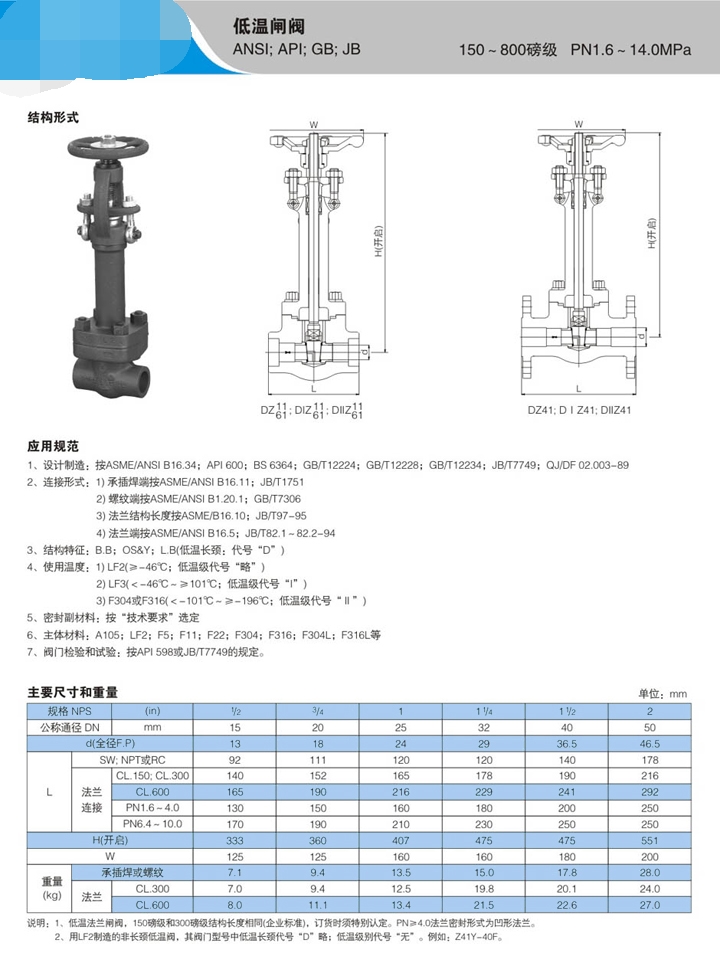 商務合作:15867725552@163.com『DZ61H鍛鋼低溫承插焊閘閥』供應商,本司供應的【低溫閘閥】質量先行、價格合理、售后服務較完善。『DZ61H鍛鋼低溫承插焊閘閥』適用于輕重工業(yè)及樓宇管道。流體前進的道路上,讓滄海閥門為您排憂解難!【閘閥】可應用于:化工、石化、石油、造紙、采礦、電力、液化氣、食品、制藥、給排水、市政、機械設備配套、電子工業(yè),城建等領域。 產品名稱DZ61H鍛鋼低溫承插焊閘閥產品型號DZ11Y、DZ61Y